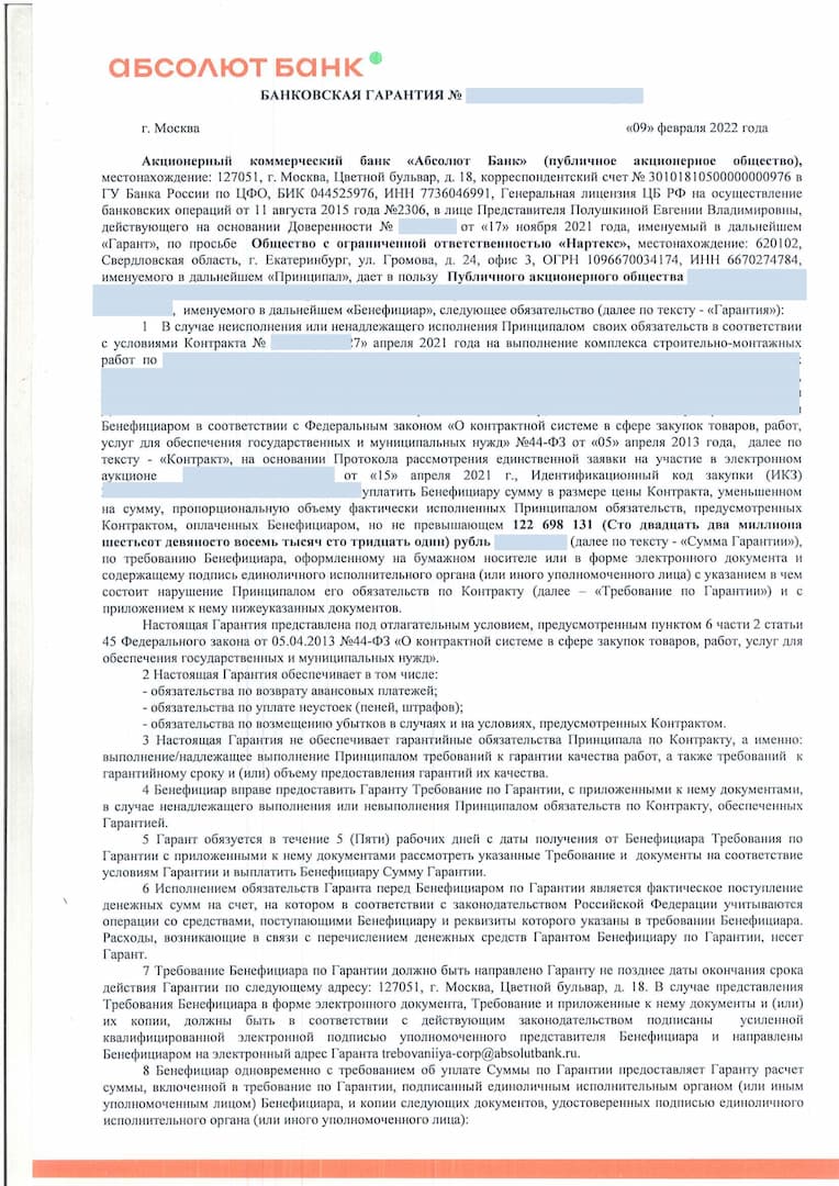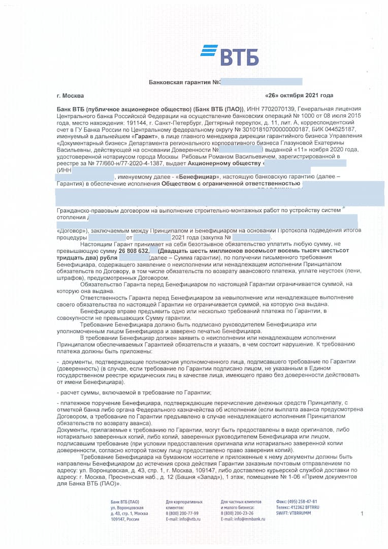У заказчика есть свои требования и критерии к банковской гарантии. У банков есть свои макеты и формы банковских гарантий. При оформлении необходимо быть уверенным, что форма банка и требования заказчика не противоречат друг другу. В отдельных случаях мы согласуем заранее с заказчиком макет, который готовит банк и только потом вы оплачиваете комиссию банку и получаете гарантию.